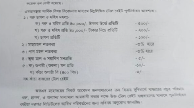 মেহেন্দিগঞ্জের উলানিয়া বাজার ও খেয়াঘাটের ইজারা মূল্য কমানোর দাবীতে লিখিত আবেদন! - মেহেন্দিগঞ্জ সংবাদ।। Mehendiganj Sangbad