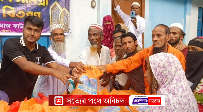 মেহেন্দিগঞ্জে পুর্ব বালিয়া যুবসমাজ ফাউন্ডেশনের উদ্যোগে ঈদ উপহার হিসাবে কোরবানির মাংস বিতরণ।