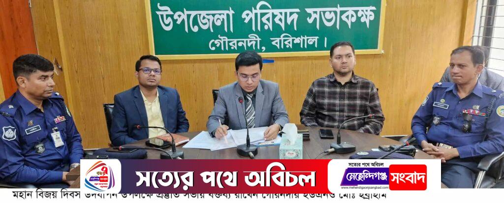 গৌরনদীতে শহীদ বুদ্ধিজীবী ও মহান বিজয় দিবস উদ্যাপন উপলক্ষে প্রস্তুতি সভা অনুষ্ঠিত।