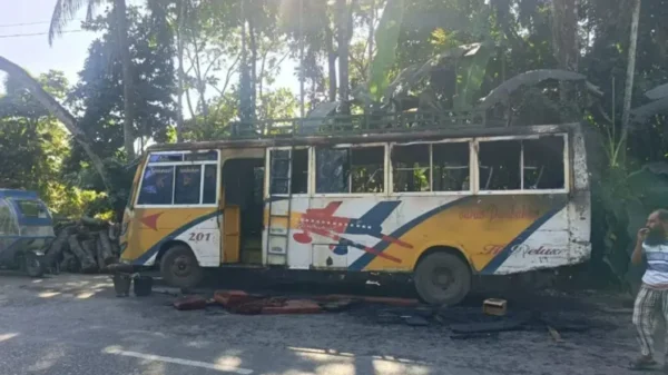 বরিশাল সদর উপজেলার দিনারের পুল এলাকায় সড়কের পাশে থাকা একটি বাসে অগ্নিসংযোগের অভিযোগ উঠেছে। সোমবার (১৭ নভেম্বর) রাত ২টার দিকে চরকাউয়া-গোমা আঞ্চলিক সড়কের পাশে এ ঘটনা ঘটে। স্থানীয়রা বিষয়টিকে নাশকতা দাবি করলেও এটি অগ্নিসংযোগ নাকি অগ্নিকাণ্ড, তা নিশ্চিত নয় পুলিশ।