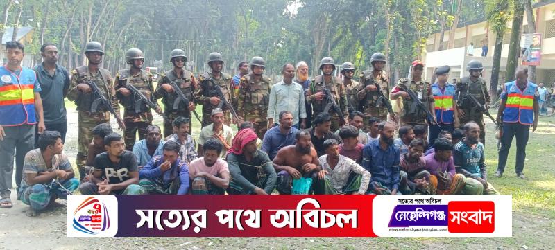 মেঘনা নদীর বরিশালের হিজলা উপজেলার বিভিন্ন স্থানে বাংলাদেশ সেনাবাহিনী, উপজেলা প্রশাসন, মৎস্য অধিদপ্তর, কোস্ট গার্ড ও নৌ-পুলিশের যৌথ অভিযানে আজ সোমবার সকালে ২৭ জন অসাধু জেলেকে আটক করা হয়।